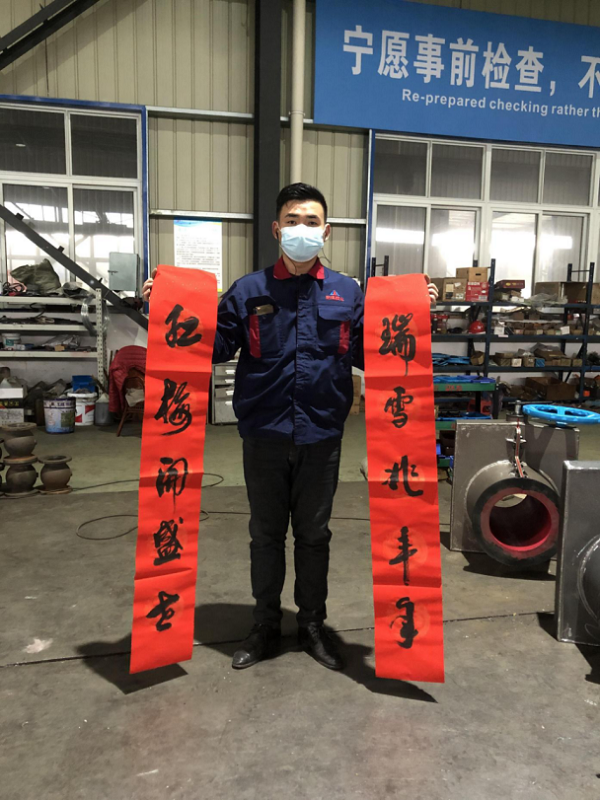 1月22日,農(nóng)歷新春來臨之際,灣沚區(qū)老年詩書畫學(xué)會組織部分書畫家來到其創(chuàng)作中心——蕪湖耐得膠管閥業(yè)有限公司,舉辦了“迎春送福”送文化進企業(yè)活動。當(dāng)天,雖然天空下著小雨,氣溫也偏低,但20多名書畫家熱情十分高漲,在耐得公司創(chuàng)作中心主任王文軍先生帶領(lǐng)下,創(chuàng)作出數(shù)百幅對聯(lián)、福字及書畫作品200多幅,并贈送給車間工人,表達(dá)了對廣大職工的新春問候與祝福。圖為活動現(xiàn)場。