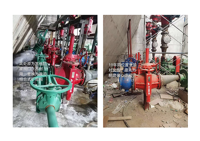 原先為耐磨偏心球閥。更換為我司組合式礦漿閥