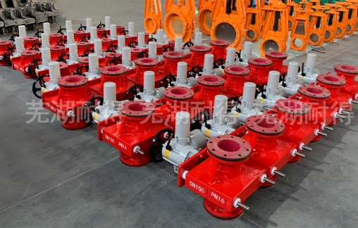 管夾閥別稱膠管閥。工作原理就是利用手動、電動、氣動、液動、傘齒輪等驅(qū)動方式通過擠壓內(nèi)襯膠管達到開關的作用,是一種新型化經(jīng)濟適用型的管道流體介質(zhì)控制閥門,常用于礦山、污水、發(fā)電、化工、石油等行業(yè)。